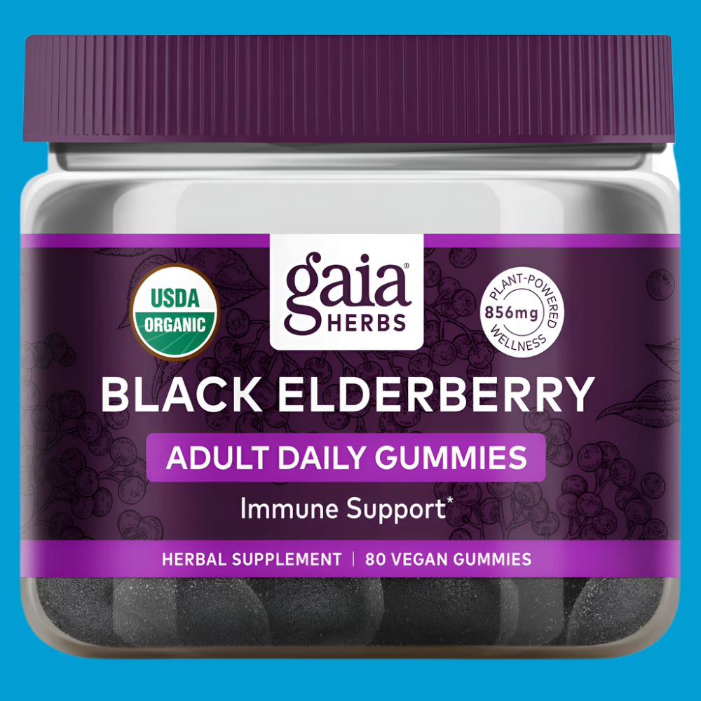 Black Elderberry Adult Daily Gummies by Gaia Herbs provide plant-powered immune support in a naturally delicious, vegan-friendly form. Elderberries—long known as “Nature’s Immune Tonic”—are renowned for helping the body stay resilient during seasonal changes. Each serving delivers 462 mg of Elderberry extract and concentrate, equivalent to 6 g of fresh Elderberries, giving you antioxidant and immune protection without refined sugars, gelatin, or artificial ingredients.