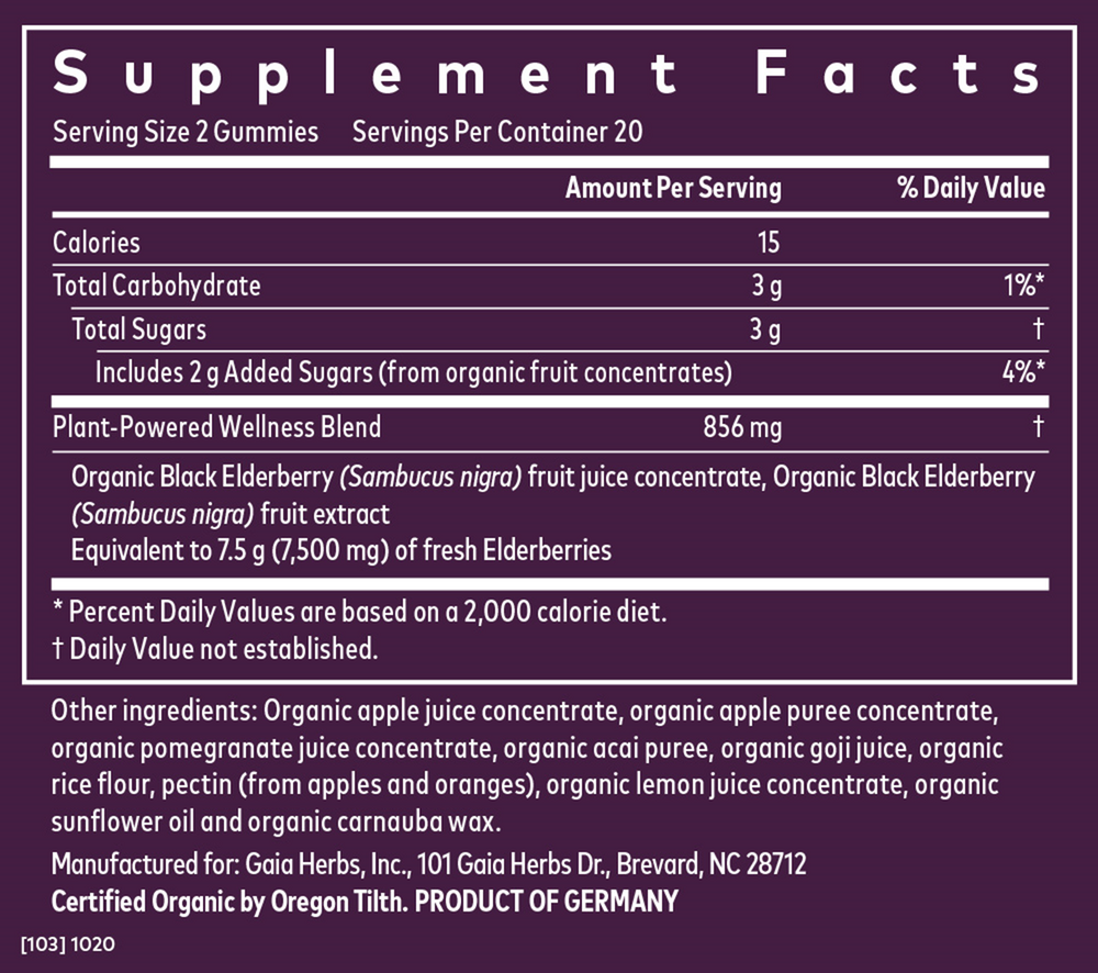 Provides antioxidant and vitamin-rich support from real Elderberries