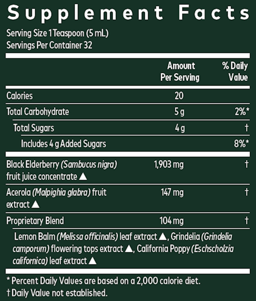 It combines immune-strengthening elderberry with calming botanicals like Lemon Balm and California Poppy to support both wellness and rest.