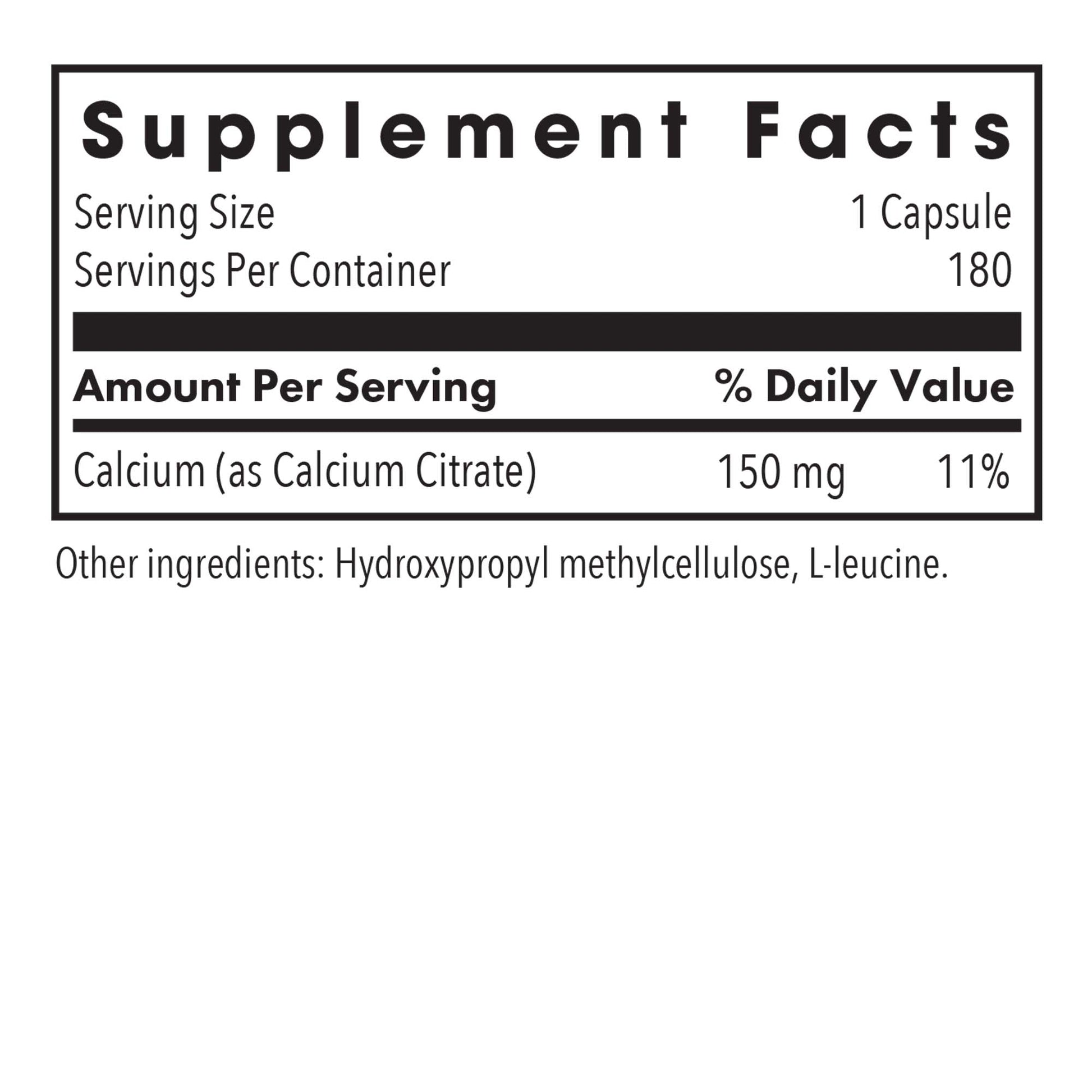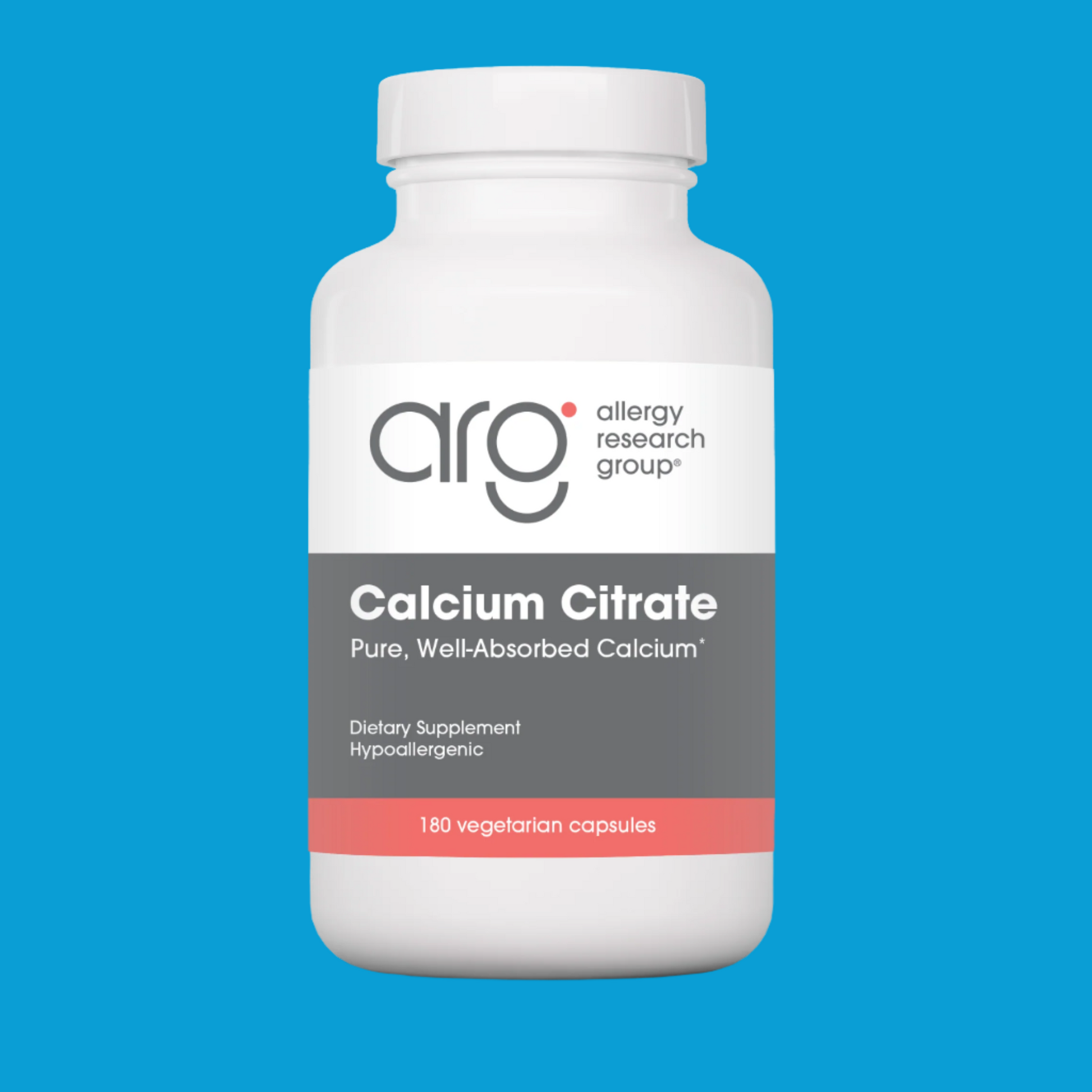 Calcium Citrate by Allergy Research Group delivers 150 mg of elemental calcium per capsule in the citrate form—known for superior absorption and bioavailability. This essential macromineral supports bone density, muscle contraction, nerve signaling, and cardiovascular function.* The vegetarian formula is ideal for individuals seeking a well-tolerated, highly absorbable calcium source without unnecessary additives.