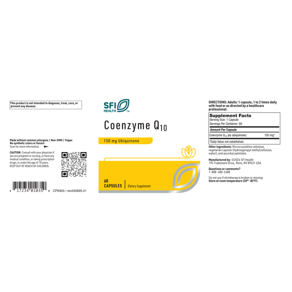 Coenzyme Q10 (CoQ10) is a vital nutrient that supports cellular energy production, heart health, and neurological function. This formula delivers 150 mg of pure ubiquinone—the natural trans isomer form—for optimal absorption and bioactivity. CoQ10 levels can decline due to age, illness, or medication use, making supplementation essential for maintaining energy and organ vitality.