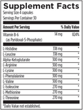 Each capsule delivers a carefully balanced blend of essential amino acids — including leucine, isoleucine, valine, lysine, and methionine — along with Vitamin B6 (as pyridoxal-5-phosphate) for optimal utilization. The addition of alpha-ketoglutarate enhances the body’s ability to metabolize amino acids efficiently, supporting energy production and overall muscle health.