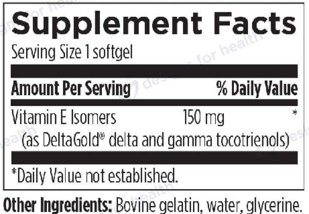 | Vitamin E Isomers (DeltaGold® delta and gamma tocotrienols from annatto seed) | 150 mg (135 IU) | † |