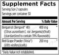 Bergavit® 40, derived from the citrus fruit Citrus aurantium var. bergamia, is standardized to 39% flavonoids that help balance cholesterol and triglyceride levels naturally.* Vinia®, a red grape cell powder rich in polyphenols such as resveratrol, enhances antioxidant status and supports healthy blood flow.* This gluten-free, soy-free formula provides comprehensive cardiovascular and metabolic support in a simple, two-capsule daily serving.
