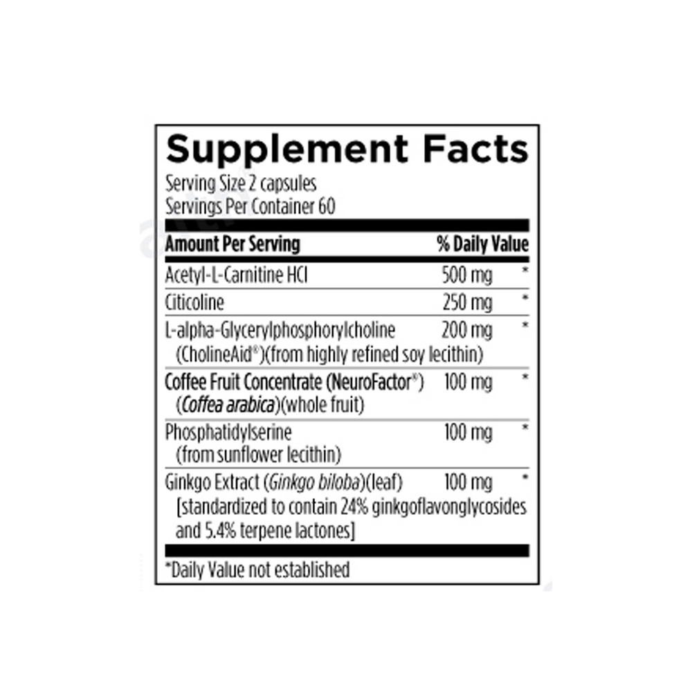 This advanced blend includes Acetyl-L-Carnitine, Citicoline (Cognizin®), Glycerophosphocholine (GPC), Phosphatidylserine, Ginkgo biloba, and Coffee Fruit Concentrate (NeuroFactor™) — all working synergistically to maintain sharp focus, balanced mood, and long-term cognitive health.