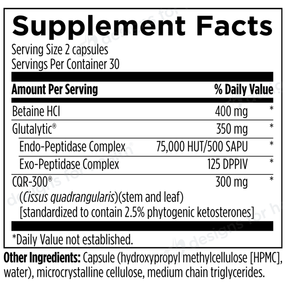 This formula also includes Glutalytic®, a clinically studied enzyme blend designed to break down gluten and other difficult-to-digest proteins such as dairy casein, soy, and egg.* Additionally, Betaine HCl supports complete protein digestion and enhances nutrient absorption for comprehensive digestive wellness.*