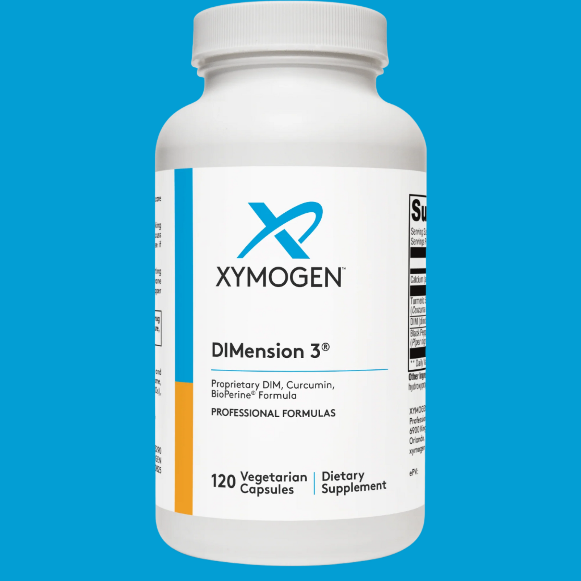 DIMension 3® by XYMOGEN, available at Rock Ridge Pharmacy, offers a unique three-dimensional approach to promoting healthy estrogen metabolism. This advanced formula features diindolylmethane (DIM), curcumin (from turmeric extract), and BioPerine®—a patented black pepper extract—to support the detoxification of xenoestrogens, promote hormonal balance, and enhance antioxidant defenses.