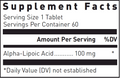 Provides 100 mg of pure alpha-lipoic acid per tablet