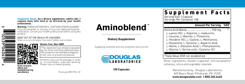 AminoBlend™ by Douglas Laboratories delivers a balanced blend of 18 essential, conditionally essential, and non-essential amino acids in their physiological L-crystalline forms. Amino acids play foundational roles in muscle health, neurotransmitter production, detoxification, metabolism, hormone synthesis, immune activity, and cellular repair.*