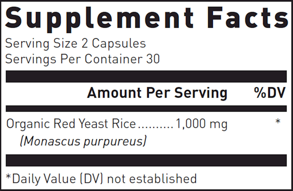 | Organic Red Yeast Rice (Monascus purpureus) | 1000 mg | † |