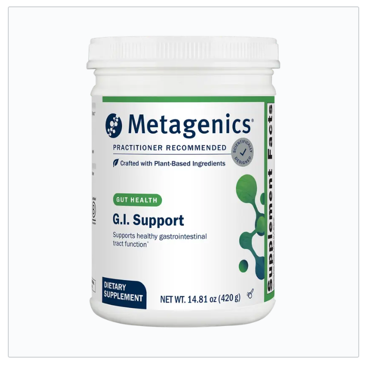 G.I. Support™ (formerly Endefen®) by Metagenics is a premium powder formula uniquely designed to support the integrity and function of the entire gastrointestinal (GI) tract. This advanced blend combines mucosal-supportive nutrients, prebiotic fibers, antioxidants, and botanicals to help nourish gut lining, balance microflora, and promote digestive comfort.