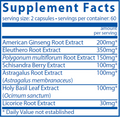 | Astragalus Extract (Astragalus membranaceus, root, standardized to 5% astragalosides) | 100 mg | † |