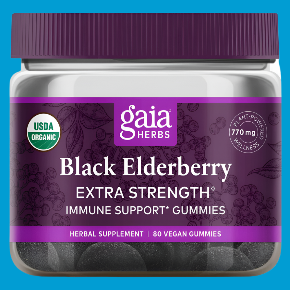 Gaia Herbs Black Elderberry Gummies Extra Strength deliver a powerful and convenient way to support your immune system—naturally. Each serving provides the antioxidant power of 12.3 grams of fresh Black Elderberries, concentrated into two organic, vegan-friendly gummies.