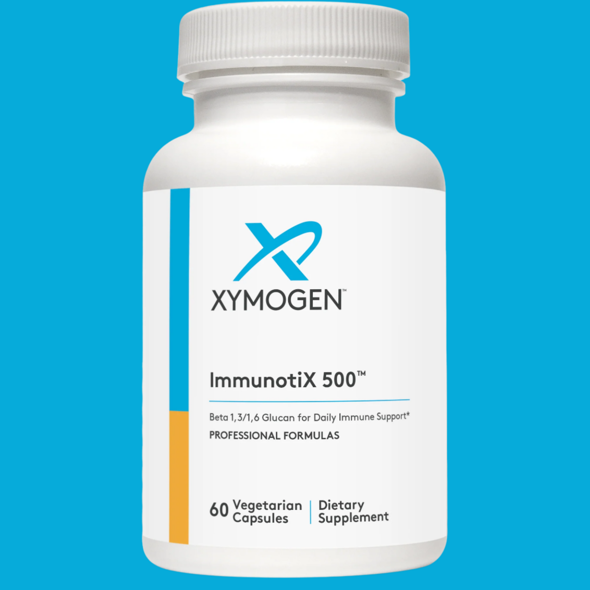 ImmunotiX 500™ by XYMOGEN, available at Rock Ridge Pharmacy, delivers 500 mg of Wellmune® whole glucan particle per capsule—double the dose found in ImmunotiX 250™—providing potent beta 1,3/1,6 glucan sourced from Saccharomyces cerevisiae (baker’s yeast). This non-GMO, hypoallergenic, and GRAS-certified ingredient primes and mobilizes the body's innate immune cells, enhancing first-line immune responses against pathogens.