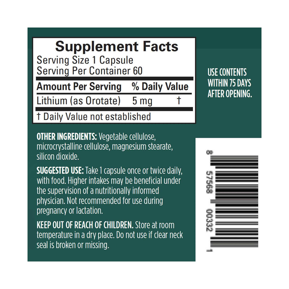 Lithium (as Lithium Orotate) | 5 mg | † |
