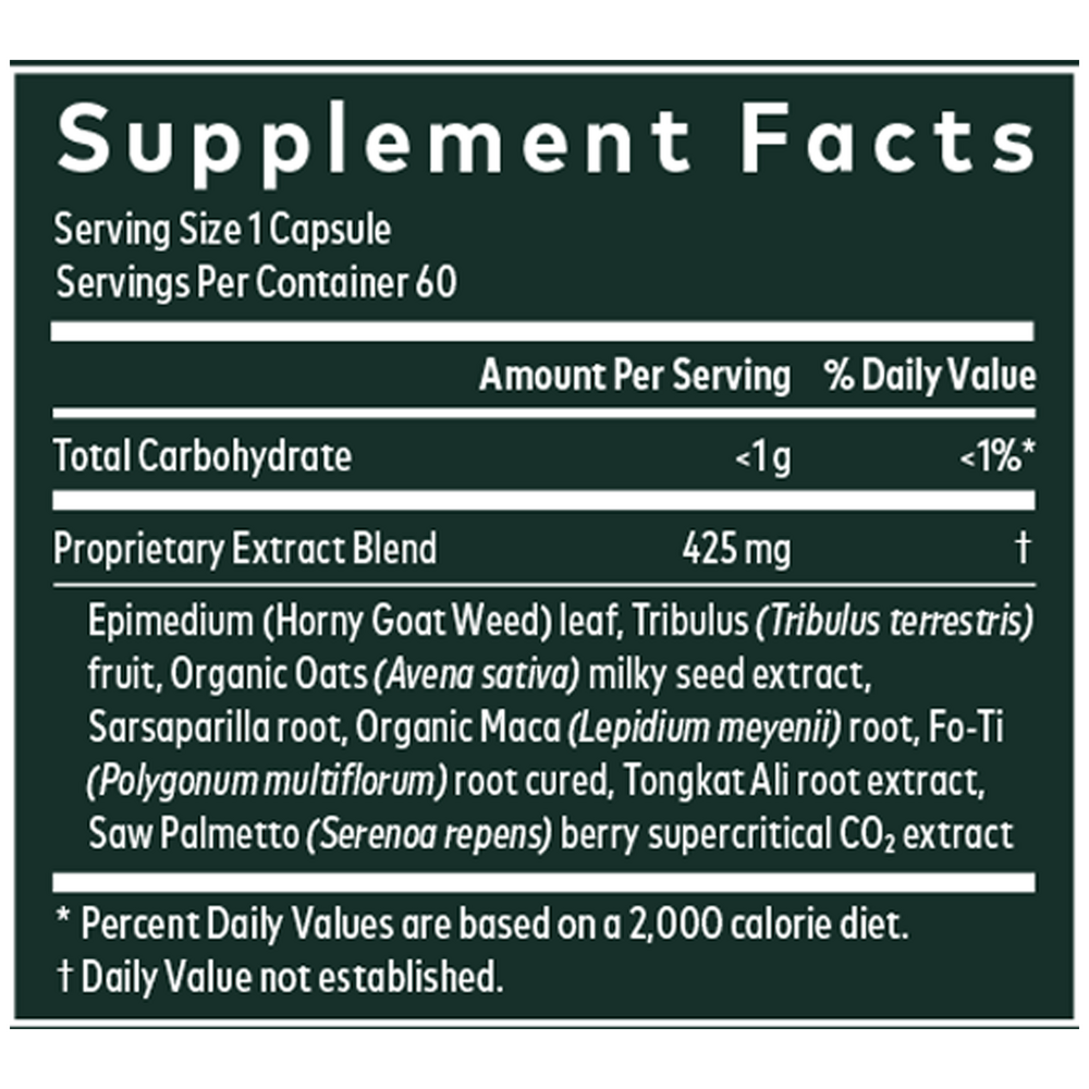 This energizing formula combines Horny Goat Weed, Maca, Saw Palmetto, Tribulus, and Tongkat Ali—time-honored herbs used to sustain drive and physical performance.*