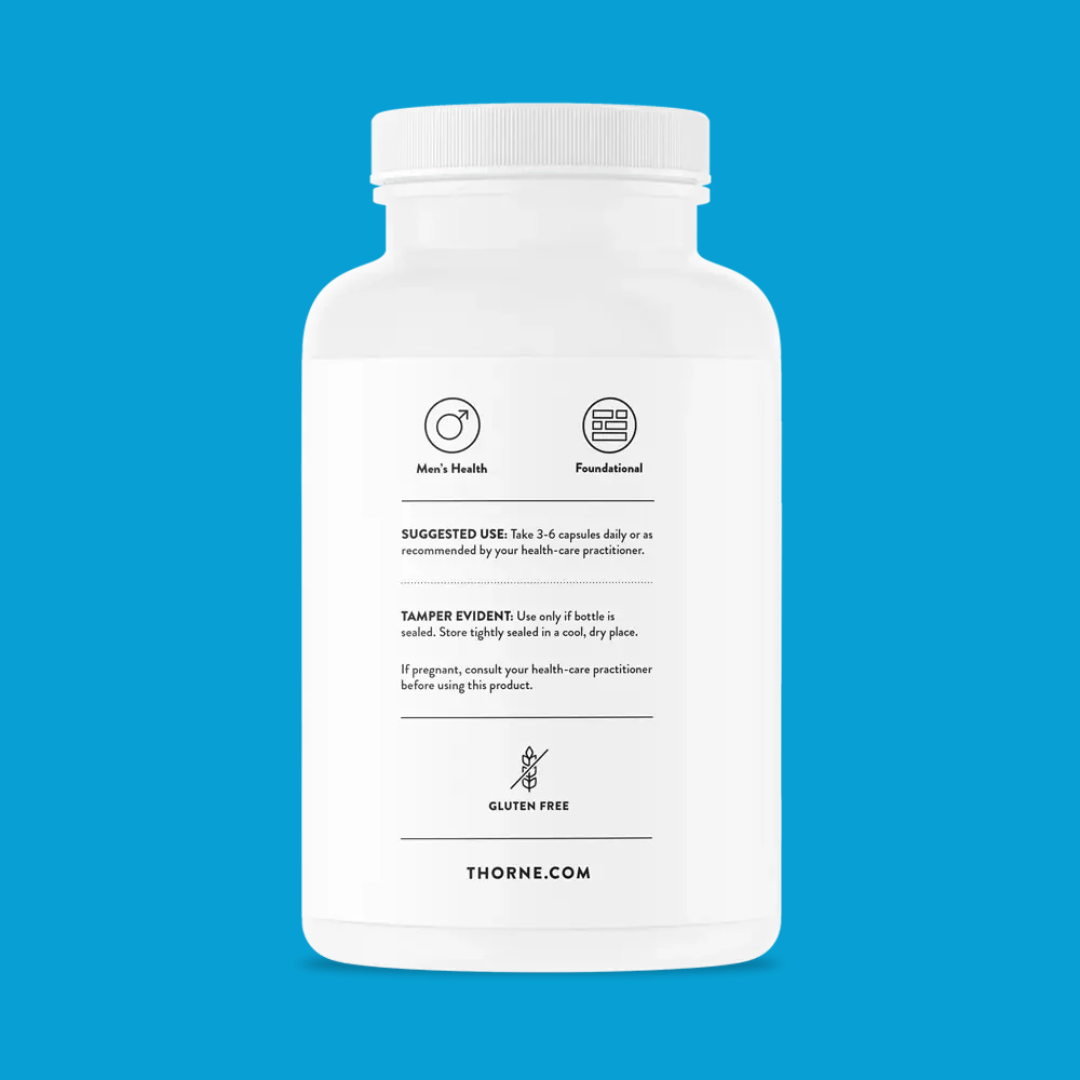 Men's Multi 50+ by Thorne is a premium multivitamin formulated to meet the specific nutritional needs of men aged 50 and older. This comprehensive formula delivers a full spectrum of essential vitamins, minerals, and antioxidants that support heart health, cognitive function, bone strength, and energy production. With high-quality, bioavailable ingredients, Men's Multi 50+ promotes vitality and wellness as men age. Free from gluten, GMOs, and artificial additives, it offers a clean, effective way to maintain optimal health.