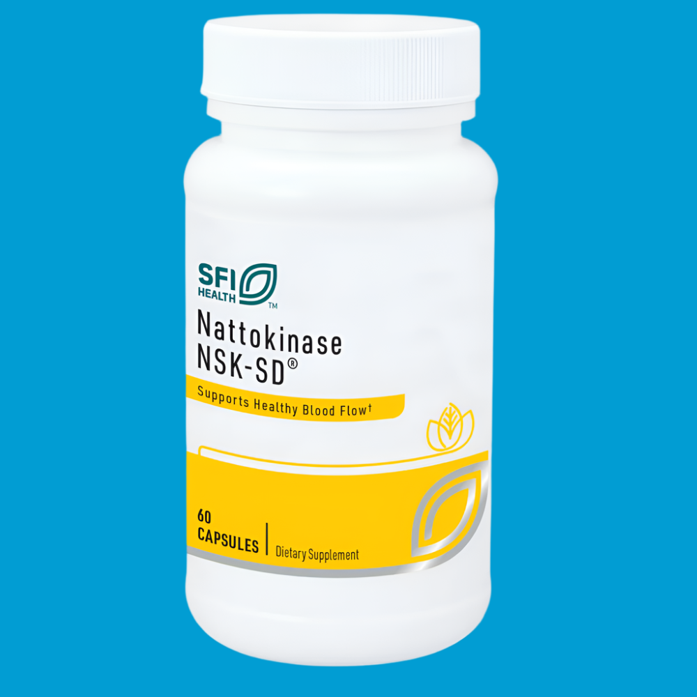 Nattokinase NSK-SD® by SFI Health is a highly purified enzyme derived from non-GMO fermented soybeans that promotes healthy circulation and fibrinolytic activity. Free of vitamin K, this supplement supports the body’s natural ability to break down unwanted fibrin and blood clots while maintaining normal blood flow and platelet function. Each capsule delivers 2,000 FU (fibrinolytic units) of clinically studied NSK-SD®, standardized for consistent potency.