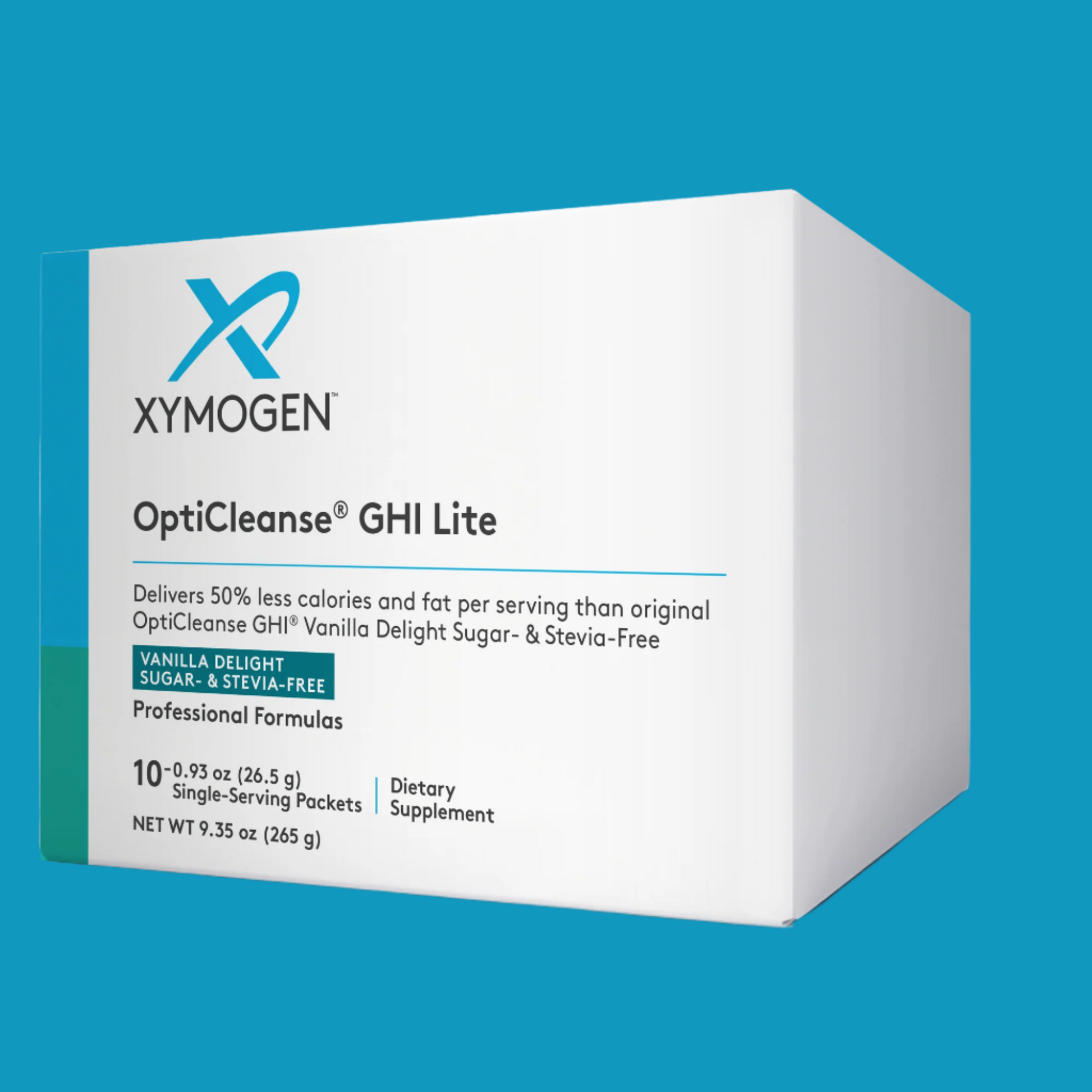 OptiCleanse® GHI Lite Sugar- and Stevia-Free by XYMOGEN, available at Rock Ridge Pharmacy, delivers a powerful combination of macro- and micronutrients to support the body's natural detoxification pathways and promote gastrointestinal health—with 50% fewer calories and fat per serving compared to the original OptiCleanse® GHI.