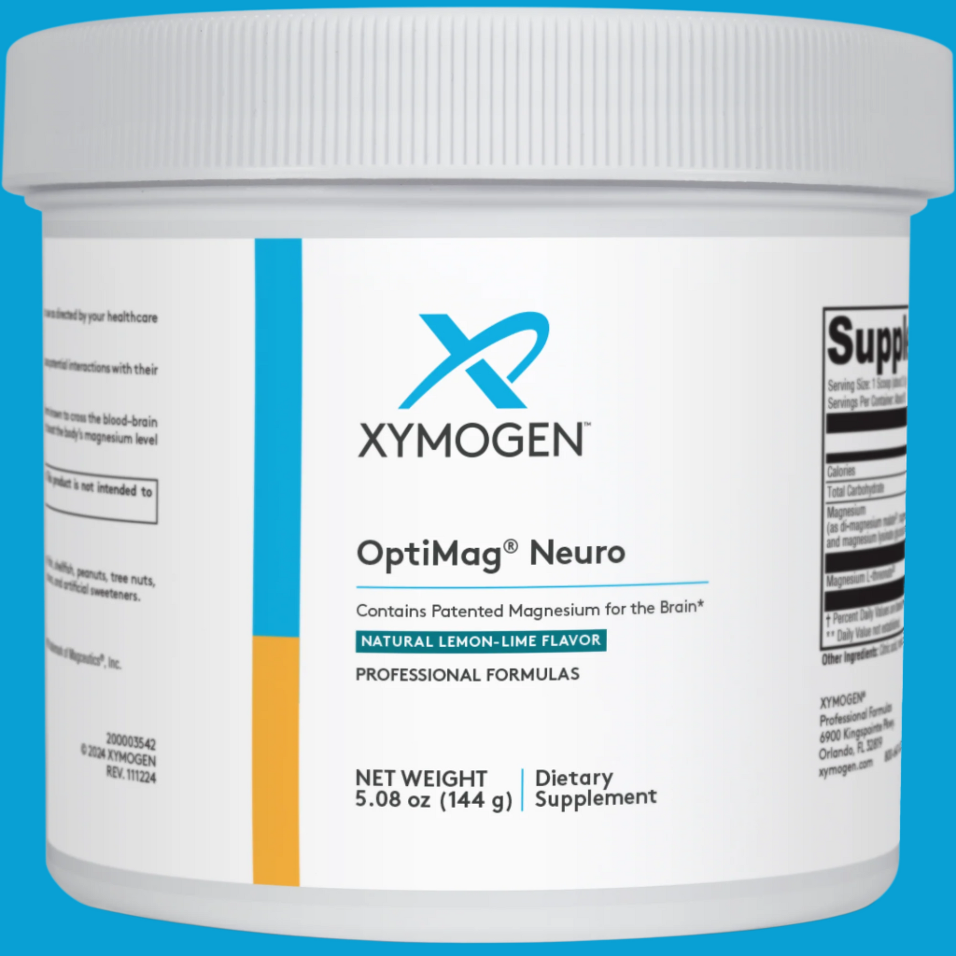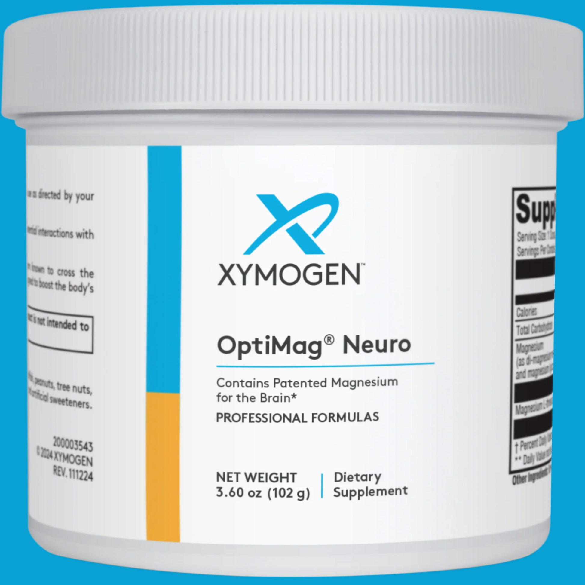 OptiMag® Neuro Powder by XYMOGEN, available at Rock Ridge Pharmacy, is a specialized magnesium formula designed to boost brain magnesium levels and support cognitive health, mood balance, and nervous system function. It features Magtein® (magnesium L-threonate)—the only form of magnesium shown to effectively cross the blood-brain barrier—combined with highly absorbable Albion® di-magnesium malate and TRAACS® magnesium lysinate glycinate chelate.