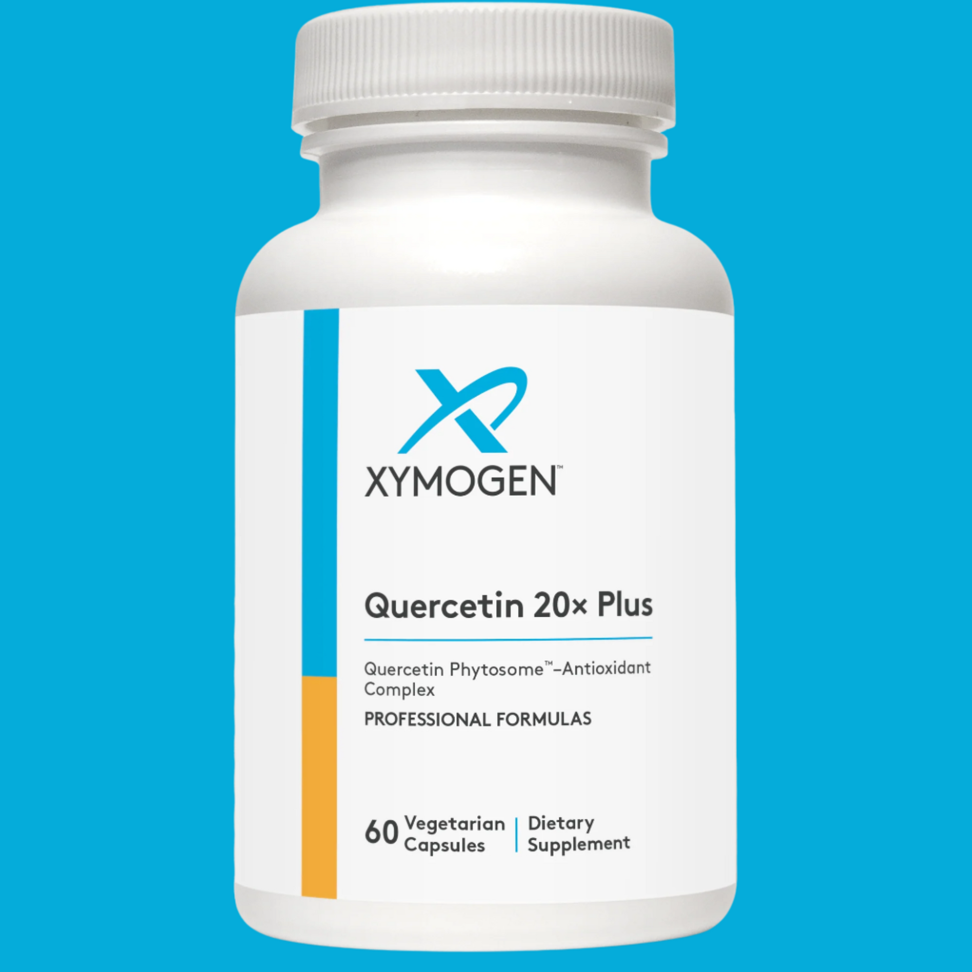 Quercetin 20× Plus by XYMOGEN, available at Rock Ridge Pharmacy, is a highly bioavailable respiratory support formula combining Quercefit®—a patented Quercetin Phytosome™—with nettle extract and powerful antioxidants. Designed to promote clear nasal passages and a healthy respiratory response, this formula targets immune pathways connected to seasonal respiratory symptoms.