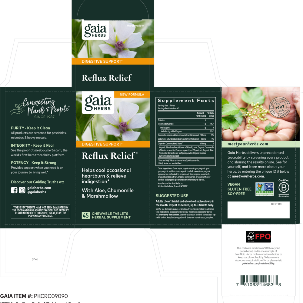 Reflux Relief by Gaia Herbs offers natural, fast-acting support to cool occasional heartburn and ease indigestion. This expertly crafted chewable formula combines soothing botanicals like Aloe Vera, Chamomile, Marshmallow, and Licorice with natural mineral buffers such as Calcium Carbonate and Sodium Bicarbonate to neutralize acid and calm the digestive tract.