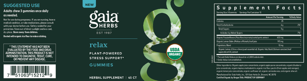 Manufactured by: Gaia Herbs, Inc. – Brevard, NC, USA.